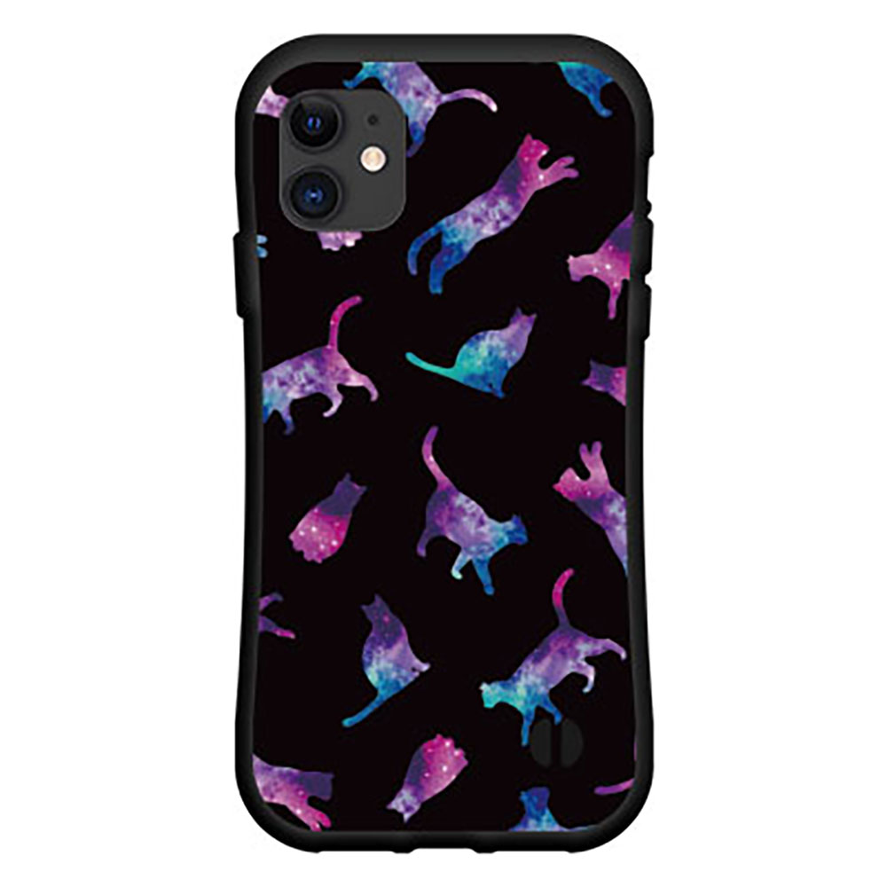 液晶保護フィルム付 iPhone 12アイフォン トゥエルブdocomo au SoftBank落としても割れにくい驚きの衝撃吸収力豊富なオリジナルデザイン耐衝撃 ハイブリッドケースキャット ドット ブラック