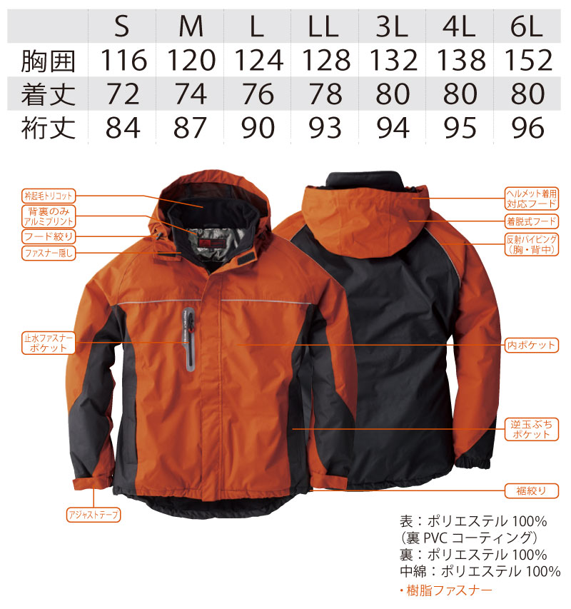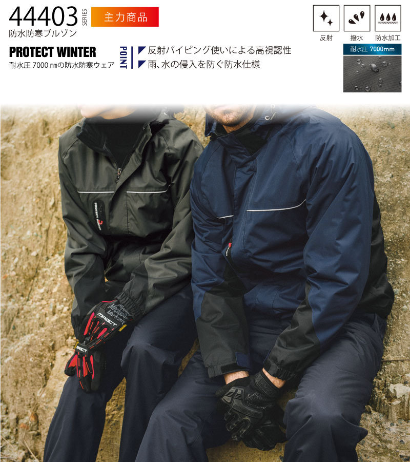 ◆商品説明: 耐水圧7000mmの防水防寒ウェア。